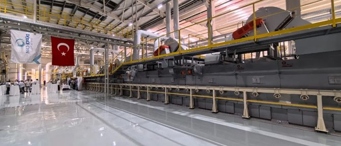 土耳其当地时间2024年6月25日15时18分,全套采用中国标准、技术和装备,由中国建材国际工程集团有限公司总承包建设土耳其Duzce Cam日熔化量300吨超白压延玻璃生产线顺利点火。